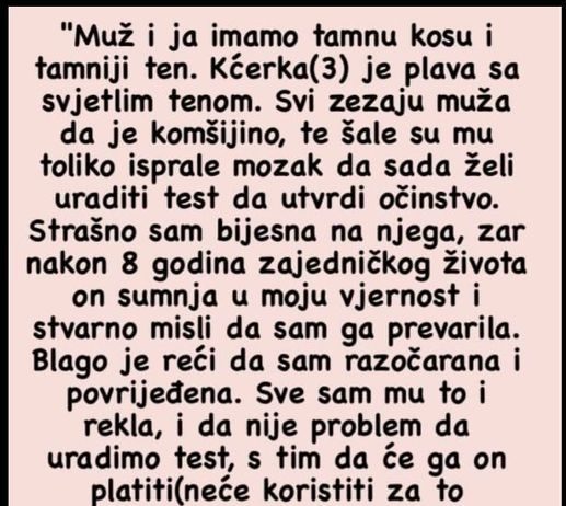 MUŽ ŽELI URADITI DNK TEST DA UTVRDI 0ČINSTV0..